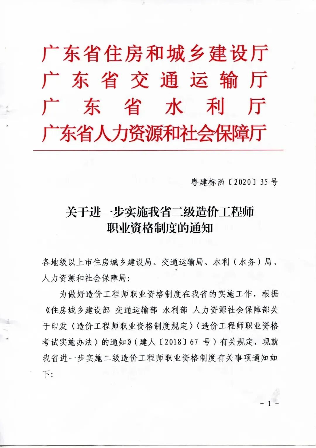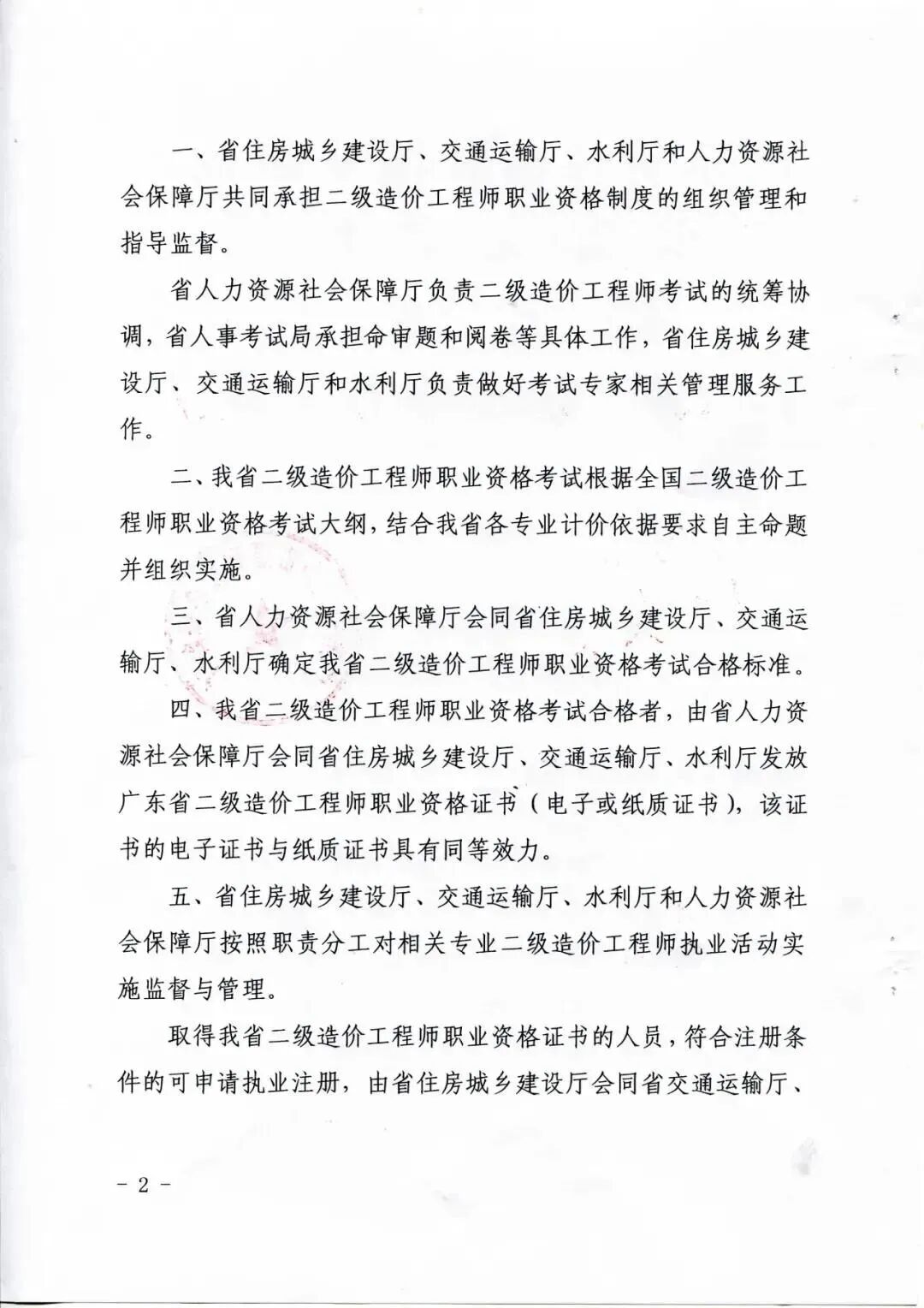 关于进一步实施我省二级造价工程师职业资格制度的通知